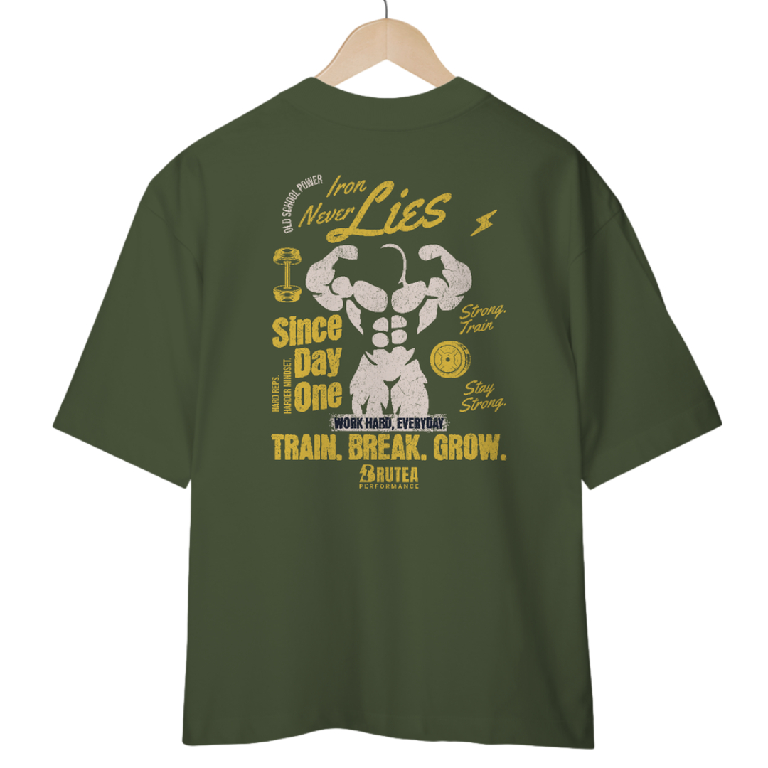 Para quem carrega ferro com propósito. A “Iron Never Lies” é mais que uma camiseta — é um manifesto para quem treina com verdade, todos os dias. Com design old school e frases que são gritos de guerra, essa oversized traz o melhor dos dois mundos: estilo bruto e mensagem direta.