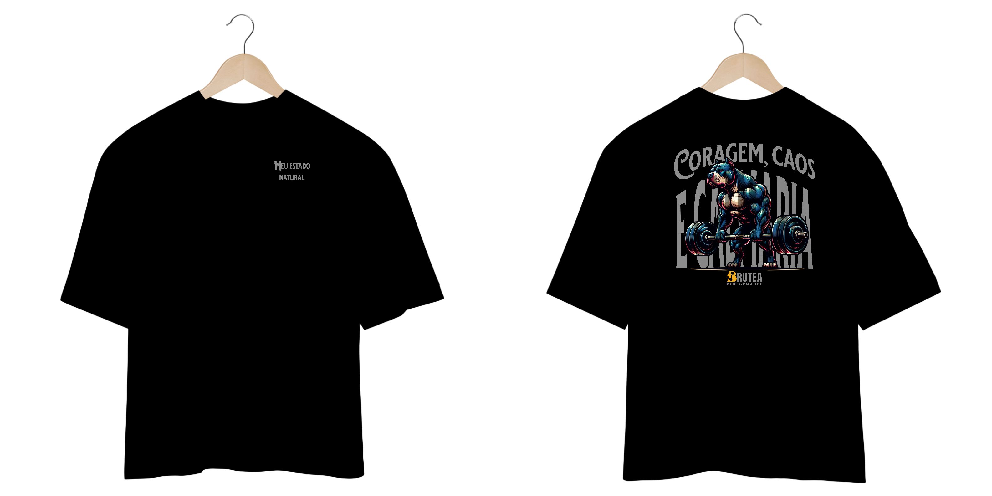 NATURAL CHAOS. Pitbull, barra pesada e a tríade “Coragem, Caos & Calmaria” para lembrar que treino é domínio do próprio instinto. O pocket Meu Estado Natural na frente marca presença; nas costas, arte grandona solta atitude bruta. Algodão 230 g/m² e corte oversize que não prende movimento. Para quem levanta peso, encara o dia e domina o caos — tudo no seu ritmo.