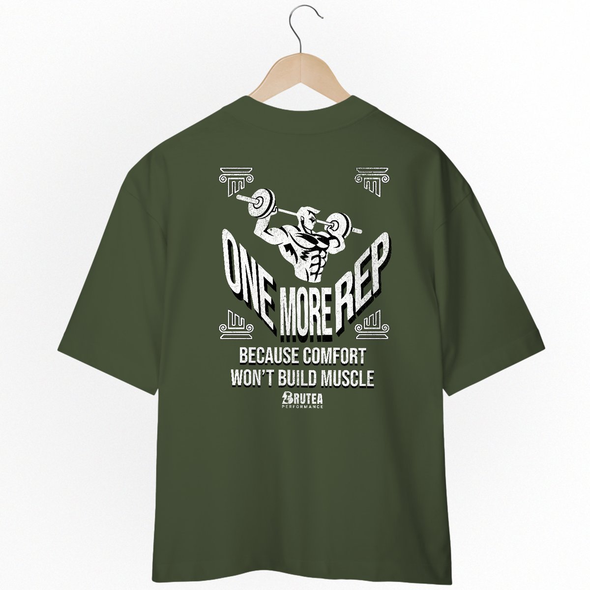 Força, foco e mais uma repetição. A estampa “One More Rep” carrega o espírito de quem sabe que a próxima rep define tudo. Nas costas, a arte intensa grita superação: “Because comfort won’t build muscle”. Na frente, uma mensagem direta: Define Yourself – porque você é o que constrói, não o que se acomoda.